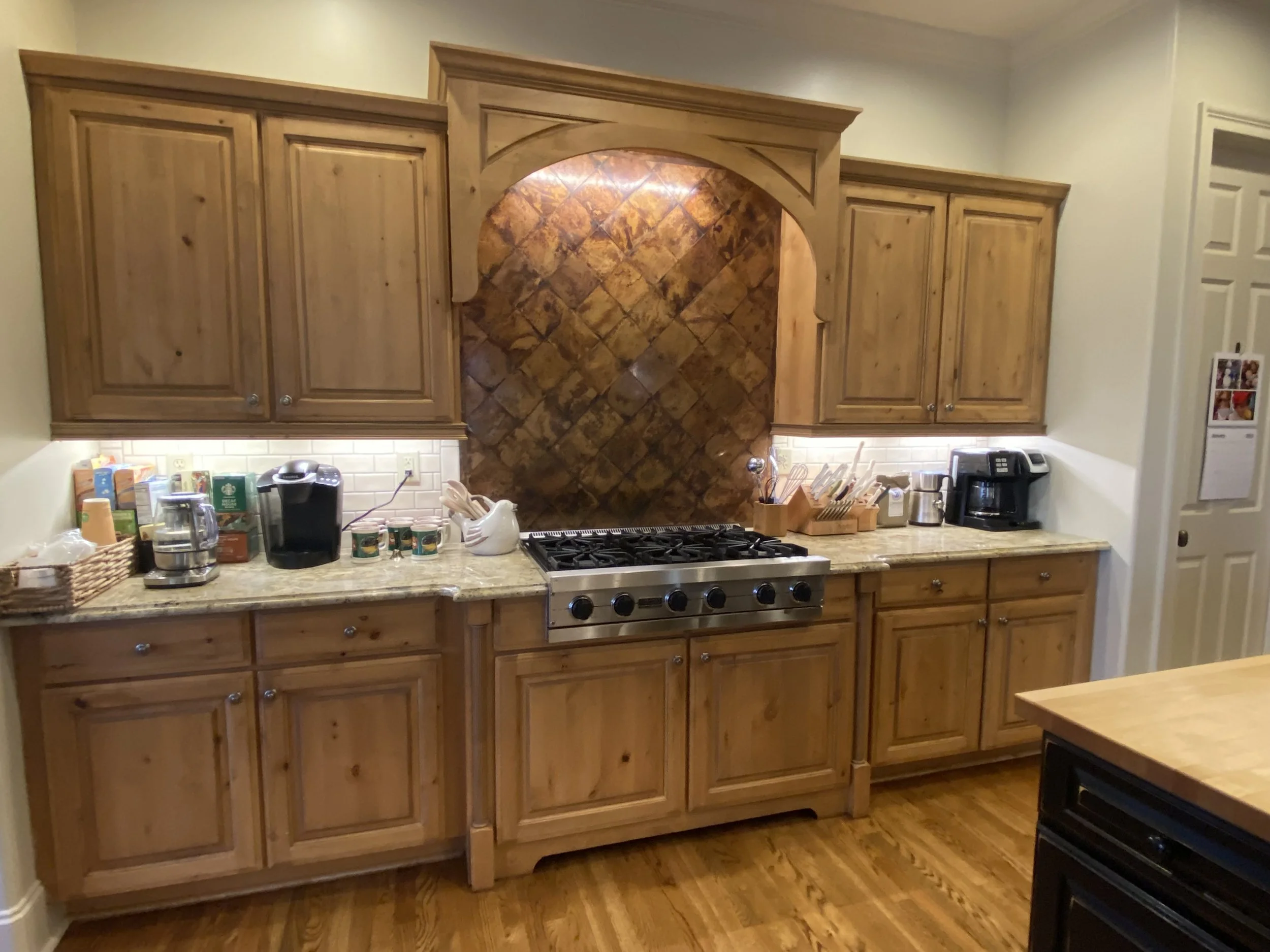 Key upgrades include a completely reworked layout, where we removed an angled section near the sink and replaced it with a straight configuration to enhance usability and overall space. New light-colored wall cabinets reach all the way to the ceiling, paired with deep-drawer base cabinets for improved functionality. A panel-ready refrigerator blends seamlessly with the cabinetry, while a hidden coffee station keeps the space clean and organized. The new workstation-style farmhouse sink adds flexibility, and a mixer lift cabinet provides practical convenience for everyday baking.